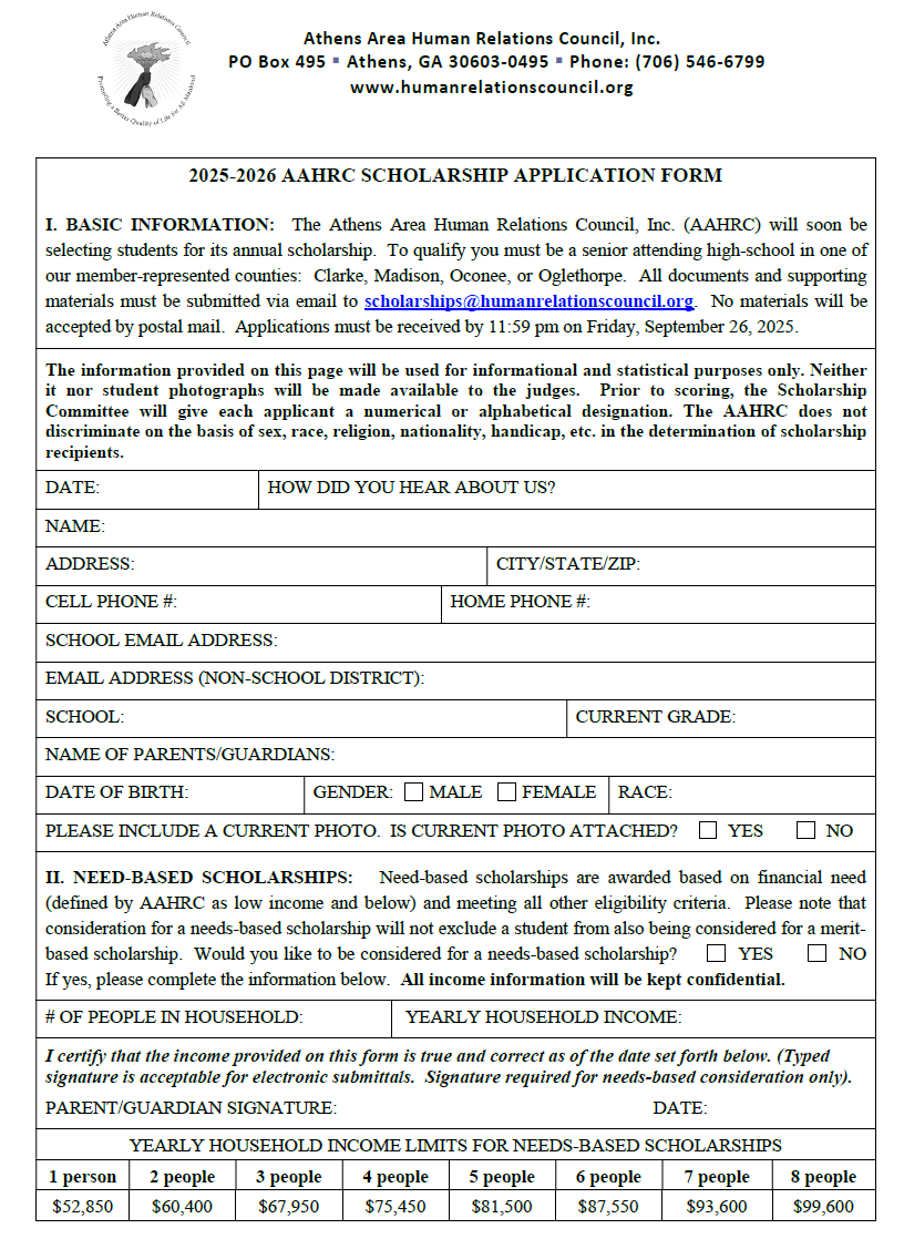 at 11:59 pm. Please submit all applications along with supporting documents to scholarships@humanrelationscouncil.org.